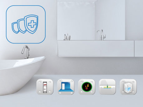 配有漏電開關保護、防電管設計、意外漏電保護、停水防倒流保護、超壓保護等多項保護功能,讓您使用安全無憂。 |